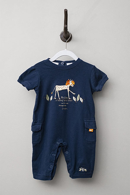 Adorable vintage Mr. Lion onesy features button snaps on bottom and back as well as two velcro side pockets.