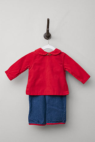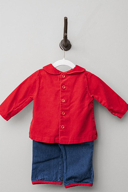 Adorable red rose set features button on the back of top as well as an elastic waistband on bottoms. Set includes both top and bottom