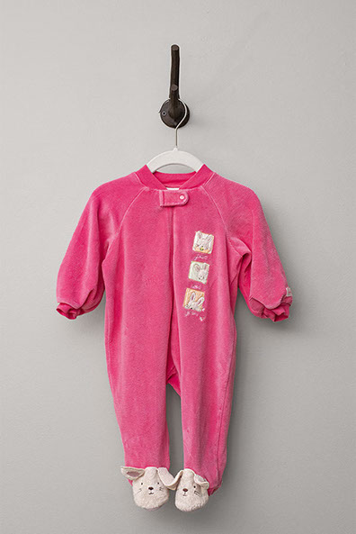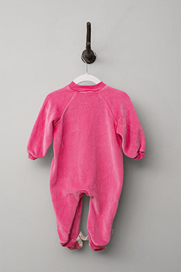 Adorable pink bunny sleepwear onesy with full length zipper in front. Features button snaps on top by neck and is footed.