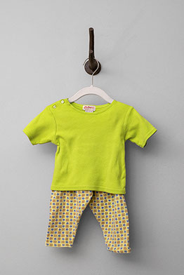 Incredible 60's inspired retro set including a solid lime green top and matching patterned bottoms and jacket. Short sleeve top features two buttons on right shoulder. Retro patterned bottoms have an elastic waistband, and matching jacket has full length front buttons.