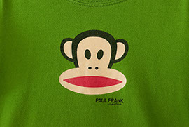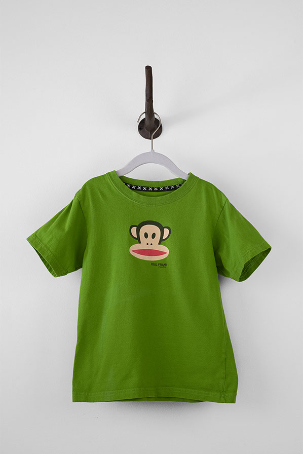 Adorable bright green Paul Frank t-shirt with short sleeves and rounded neck.