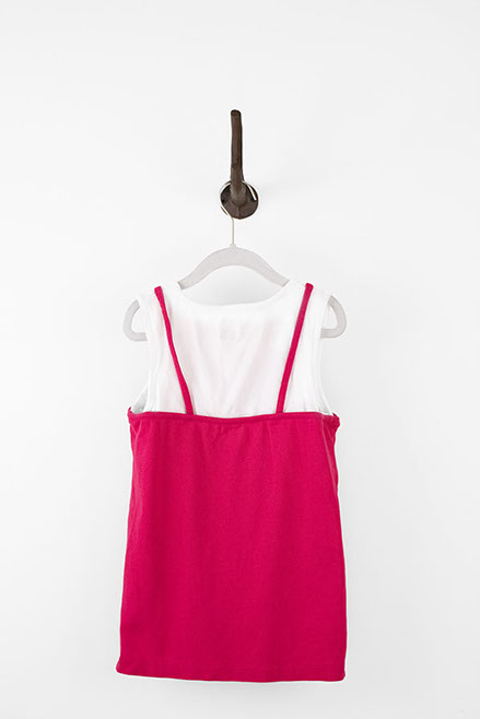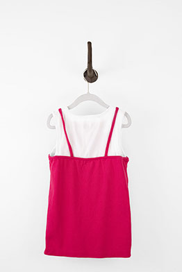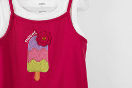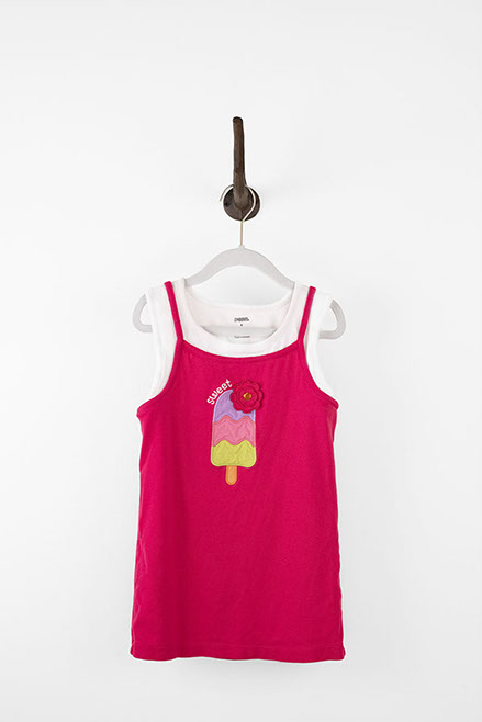 Adorable, double layered tank top featuring an ice cream patch and an embellished flower detail on the front. The top has a white layer underneath a hot pink layer, however they are not detachable from each other. Children's size 9.