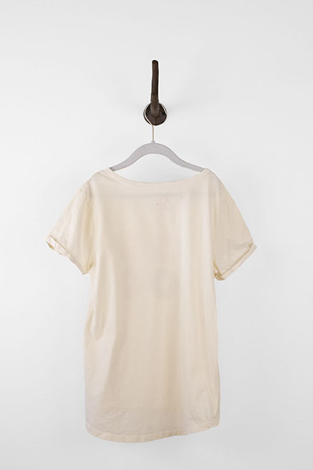 Cute donut t-shirt with embellishments on donuts. Top has a cropped front, scoopneck, and slightly rolled sleeves.